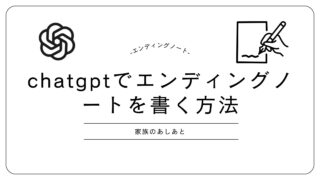 エンディングノート ChatGPTを使ってエンディングノートを書く方法|苦手な人でも30分で完成するプロンプト集 「何を書けばいいかわからない」「文章が苦手」でエンディングノートを後回しにしていませんか?ChatGPTを使えば、AIとの対話形式でスラスラ書き進められます。そのままコピーして使える項目別プロンプト集(構成・デジタル遺品・家族への手紙等)や、個人情報を守るための注意点まで徹底解説。大切な家族のために、今日から一歩踏み出しましょう。 エンディングノート