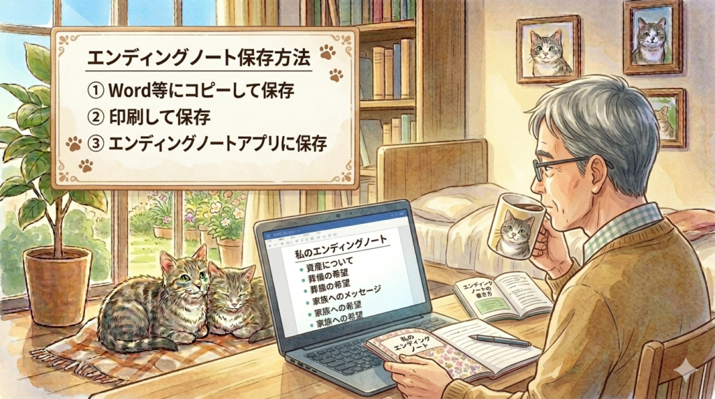 代わりに、「銀行名だけ」「金融機関の種類」などの概要だけをChatGPTで整理し、具体的な番号はエンディングノートに手書きで補足するという使い方が安全です。