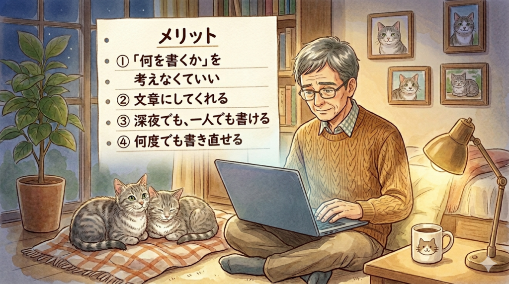 「何を書けばいいかわからない」という最大の壁が消えるね。